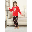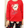 Kız Çocuk Ayıcık Baskılı %100 Pamuk İnterlok Kumaş Pijama Takımı 12347 Nar Cıcegı