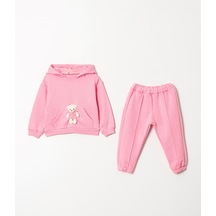 Kız Çocuk Ayıcık Oyuncaklı 3 İplik Şardonlu Kapşonlu Eşofman Takımı 001