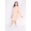 Kız Çocuk Baskılı Oversize Bisiklet Yaka Uzun Kollu Elbise - Bej