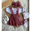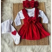 Kız Çocuk Bebek Kadife Kırmızı Pembe Doğum Günü Hediye Bandana Şık Elbise Kırmızı