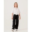 Kız Çocuk Bel Lastikli Taşlı Düğmeli Crop Gömlek-15501 Beyaz