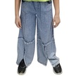 Kız Çocuk Beli Lastikli Çıtçıt Detaylı Cepli Palazzo Model Mevsimlik Mavi Kot Pantolon Açık Mavi