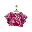 Kız Çocuk Beli Lastikli Desenli Pantolon Bluz Takım-13948 Fuşya