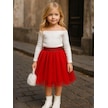 Kız Çocuk Beli Lastikli Tütü Etek-16227 Kırmızı