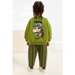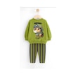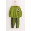 Kız Çocuk Capybara Desen Yeşil Renk Sweatshirt Çizgili Jogger Alt Üst Takım Yeşil