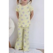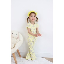Monox Kız Çocuk Çiçek Baskılı İpli Şeritli Pantolon Fitilli Polar Takım Sarı
