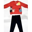 Kız Çocuk Çiçek Desenli İçi Şardonlu Kadife Taytlı Takım-14515 Nar Çiçeği