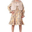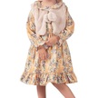 Kız Çocuk Çiçek Desenli Peluş Yelekli Midi Boy Astarlı Elbise Hardal
