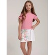 Kız Çocuk Çiçek İşlemeli Tasarım Kot Şort Etek-15623 Beyaz