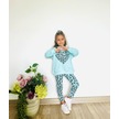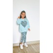 Kız Çocuk Çiçek - Leopar Detaylı 3 İplik Alt Üst Takım Sweatshirt + Tayt Mint