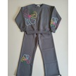 Kız Çocuk Çiçek Nakışlı 3 İplik Şardonlu Eşofman Takımı Gri