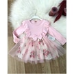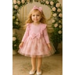 Kız Çocuk Çiçekli Toz Pembe Doğum Günü Abiye Prenses Şık Elbise Pembe