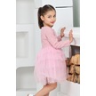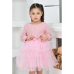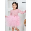 Kız Çocuk Çift Kat Tüllü Ve Fiyonklu Elbise 12172 Pembe