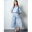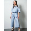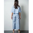 Kız Çocuk Crop Gömlek Poplin Pantolon Takım-15793 Mavi