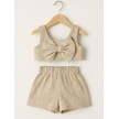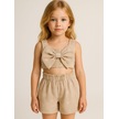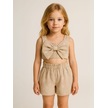 Kız Çocuk Crop Müslin Şortlu Takım-15972 Bej