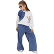 Kız Çocuk Denim Detaylı Çiçek Aksesuarlı Sweatshirt Ve Geniş Paça Kot Pantolon Takım Lacivert