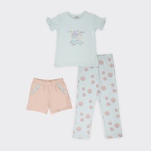Kız Çocuk Deniz Kabuğu Desenli 3'lü Set Pijama Takımı Mint 2411gk39001-4348 001