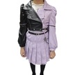 Kız Çocuk Deri Detaylı Lila Renk Üçlü Etekli Takım Lila