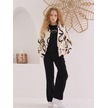 Kız Çocuk Desenli Kot Ceket İçi Tshirt Takım-15505 Krem