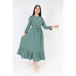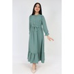 Kiz Cocuk Elbise Aerobin Keten Kumaş Tesettüre Uygun Uzun Boydan Cocuk Elbise Yonca Yeşili