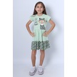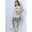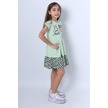 Kız Çocuk Elbise Fırfırlı Kedicik Baskılı C13 Yeşil