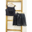 Kız Çocuk Etekli Takım Askılı Badi Fiyonklu Fırfırlı D29 Siyah