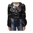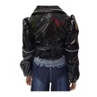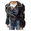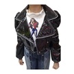 Kız Çocuk Fermuar Detaylı Siyah Parlak Deri Görünümlü Ceket & Uzun Kollu Baskılı Bluz İkili Takım Siyah
