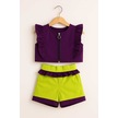 Kız Çocuk Fermuar Ve Fırfır Detaylı Alt Üst Takım 9-12 Yaş 11926 Mor