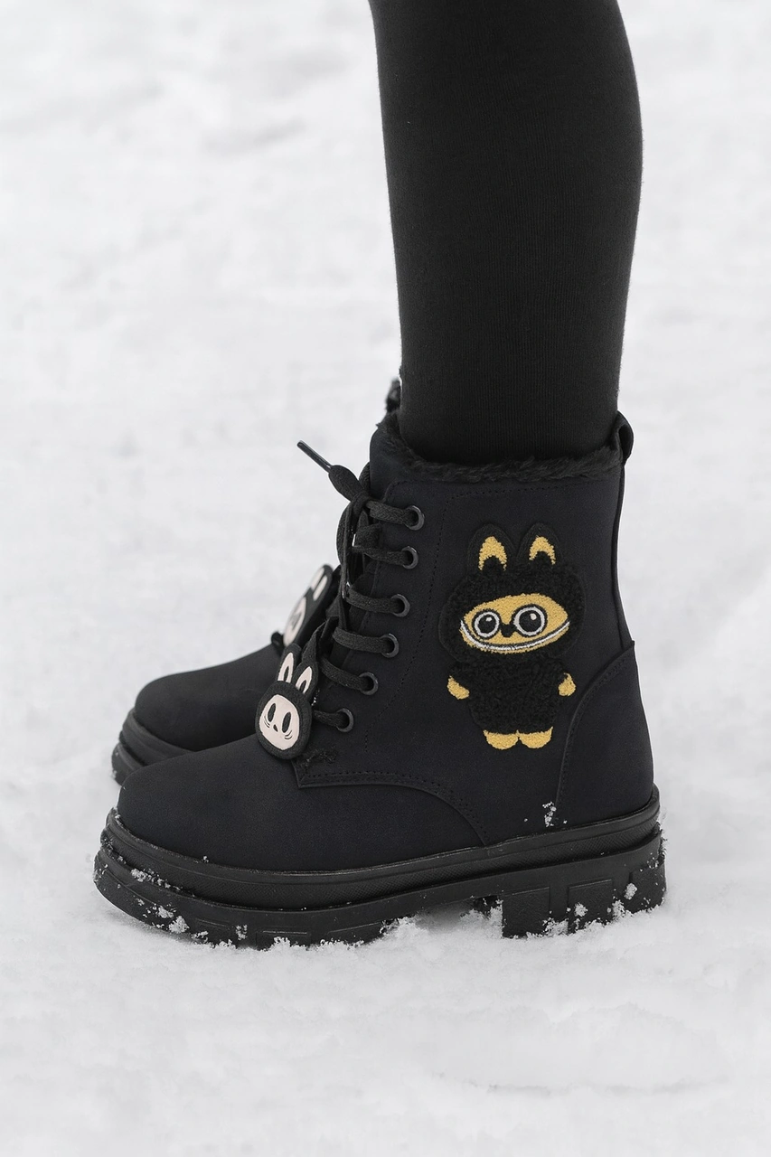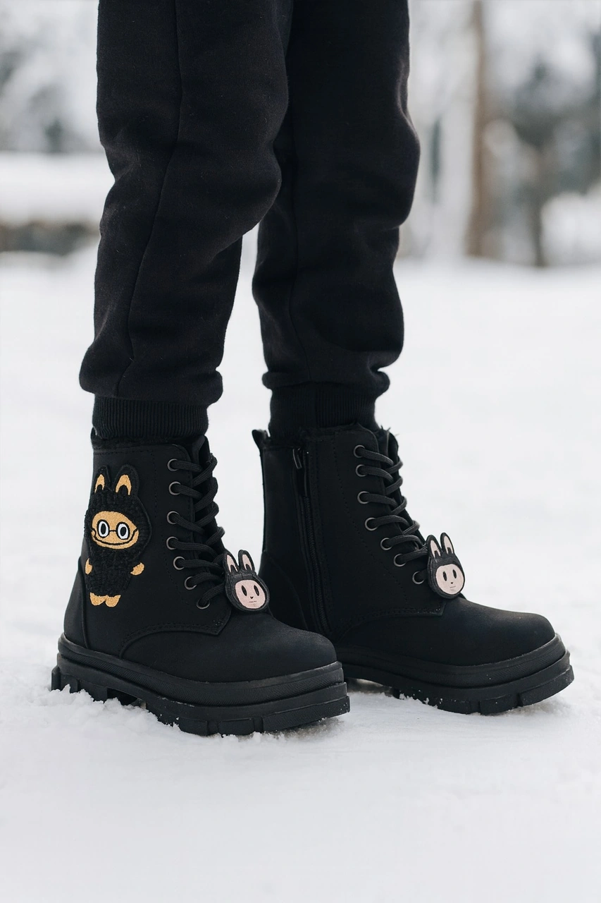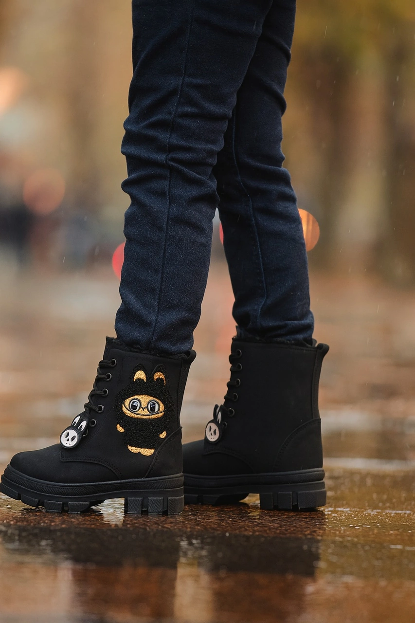 Kız Çocuk Figür Detaylı Fermuarlı Bot Siyah - Siyah