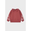Kız Çocuk Fırfır Yaka Kolları Nakışlı Sweatshirt - Gül Kurusu KREM