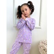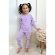 Kız Çocuk Fitilli Kumaş Çiçek Desenli Pijama Takımı Esnek Kumaş Yeni Sezon Mor Renk Mor