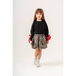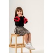 Kız Çocuk Fiyonk Detaylı Sweatshirt Leopar Desenli Etek Takım Siyah