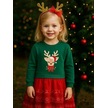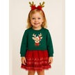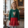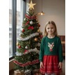 Kız Çocuk Geyikli Yılbaşı Temalı Taç Hediyeli Elbise-16405 Kırmızı