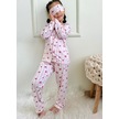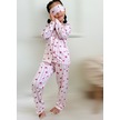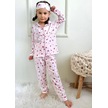 Kız Çocuk Gömlek Yaka Düğme Kapamalı Pijama Takımı Çizgili Kalp Desen Toz Pembe Renk Pembe