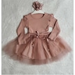 Kız Çocuk Gül Kurusu Tül Pamuklu Uzun Kol Özel Gün Doğum Günü Abiye Hediye Günlük Prenses Elbise Pembe