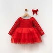 Kız Çocuk Güpür Tül Tütülü Doğum Günü Hediye Kına Prenses Elbise Kırmızı