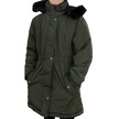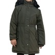 Kız Çocuk Haki Beli Lastikli Kapüşonu Kürklü Kol Ucu Ribanalı Fermuar Çıtçıt Kapamalı Midi Boy Mont Haki