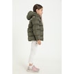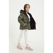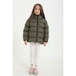 Kız Çocuk Haki İçi Polarlı Kapüşonlu Su Geçirmez Rüzgara Dayanıklı Cepli Şişme Kışlık Mont Haki