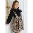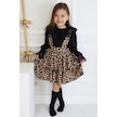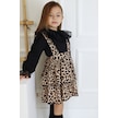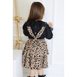 Kız Çocuk Helen Leopar Askılı Kat Kat Bağlama Jile Elbise Dantel Detay Uzun Kollu Bluz Takım