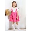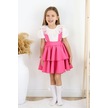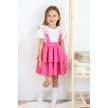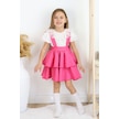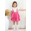 Kız Çocuk Helen Pembe Askılı Kat Kat Bağlama Jile Elbise Dantel Detay Ekru Kısa Kollu Bluz Takım
