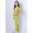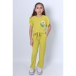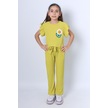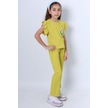 Monox Kız Çocuk Çiçek Baskılı İpli Şeritli Pantolon Fitilli Polar Takım Sarı