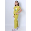 Kız Çocuk İkili Takım Fırfırlı Papatya Nakışlı F11 Yeşil