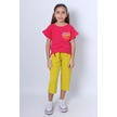Kız Çocuk İkili Takım Sırt Baskılı Püsküllü Kolları Fıfırlı F20 Fuşya