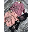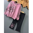 Toontoy Kız Çocuk Baskılı Kanguru Cepli Eşofman Takımı Gül Kurusu