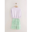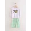 Kız Çocuk Kabartma Aplike Baskı Detaylı Sweatshirt Yeşil Beyaz Çizgili Jogger Alt Üst Takım Çok Renkli