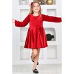 Kız Çocuk Kadife Elbise-içi Tüllü Ve Fiyonk Süslemeli 7-12 Yaş 12427 Kırmızı