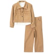 Kız Çocuk Kahverengi Gabardin Ceket Pantolon Badili Üçlü Takım