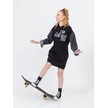 Kız Çocuk Kapüşonlu Kolları Kot Sweat Elbise-13452-siyah Siyah