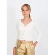 Kız Çocuk Kaşkorse Taşlı Düğmeli Hırka-14807 Ekru