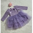 Kız Çocuk Kat Kat Tütülü Pamuklu Uzun Kollu Mor Özel Gün Abiye Doğum Günü Günlük Prenses Elbise Mor
